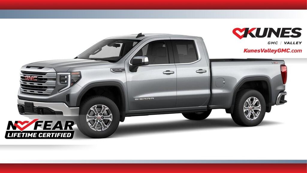 Also included with every new vehicle we sell: LIFETIME NO FEAR WARRANTY, FIRST OIL CHANGE, and AT HOME COURTESY DELIVERY! Call us for full details! Prices shown do not include tax, title, registration and $350 dealer doc fee. We pride ourselves on honesty and integrity, but please note that mistakes or misprints due to human error are possible. Call, email, or live chat with one of our friendly sales professionals now to schedule your test drive! Sterling Metallic 2026 GMC Sierra 1500 SLE 4WD 10-Speed Automatic EcoTec3 5.3L V8 10-Speed Automatic, 4WD, Black Cloth. Price includes: $1500 - Buick GMC Bonus Cash. Exp. 04/30/2026 $1750 - Buick & GMC Consumer Cash Program. Exp. 04/30/2026